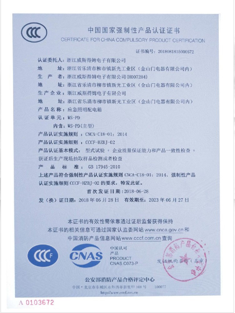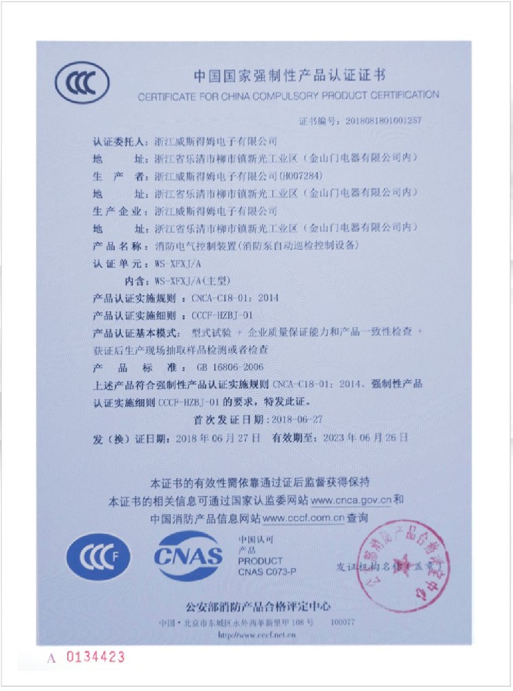 国家消防电子产品质量监督检验中心认可书