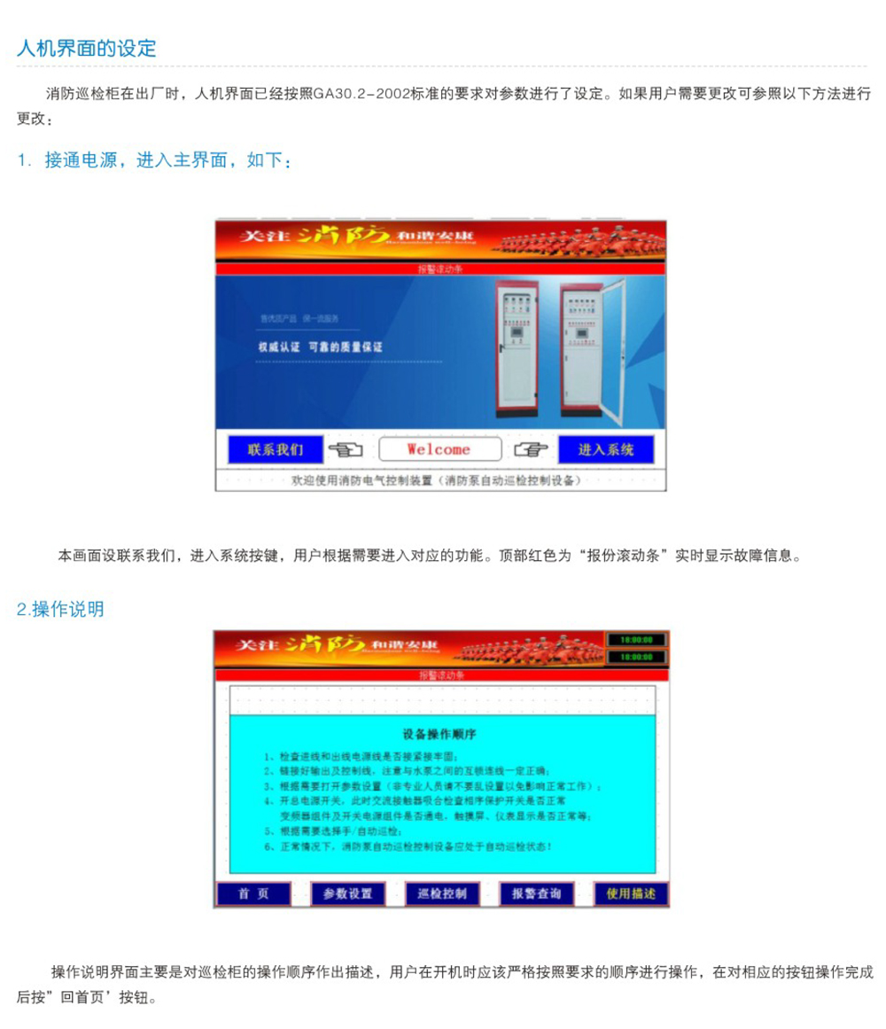 消防给水设备是灭火系统的重要组成部分,其性能和日常维护管理是否完善都会直接关系到我们的生命财产安全。近些年,消防给水设备的技术、性能.自动化程度都得到了较大的发展.但是对于各类消防设备都普遍存在着一个问题,在发生火灾时,消防设备接到启动信号后不能正常的运转.耽误了灭火的时机.造成以上现象的原因,主要是消防泵在平时长期不用,处于闲蓝状态,加上泵房的环境潮湿,随着时间的推移,特别是在夏天,很容易造成受潮、锈蚀、锈死、水泵运行不正常等现象,最后导致发生火灾时消防泵不能运转,无法启动。给国家的财产和人民的生命安全造成很大损失.根据国家标准GB16806-2006《消防联动控制系统》功能要求自主研发设计了wS-XFXJ消防泵自动巡检控制设备。