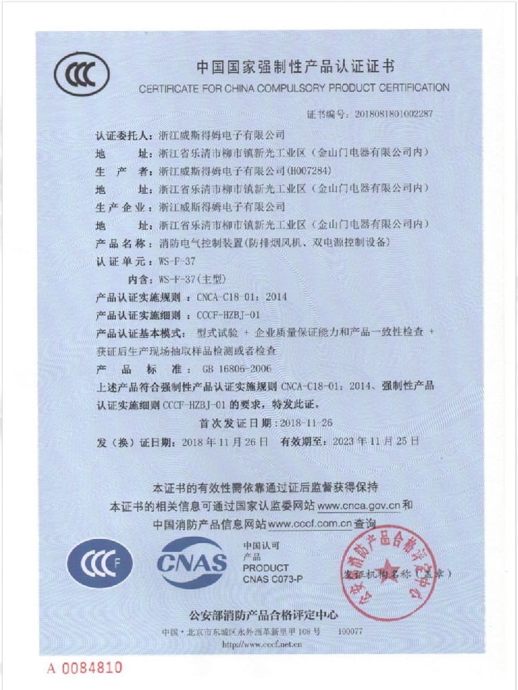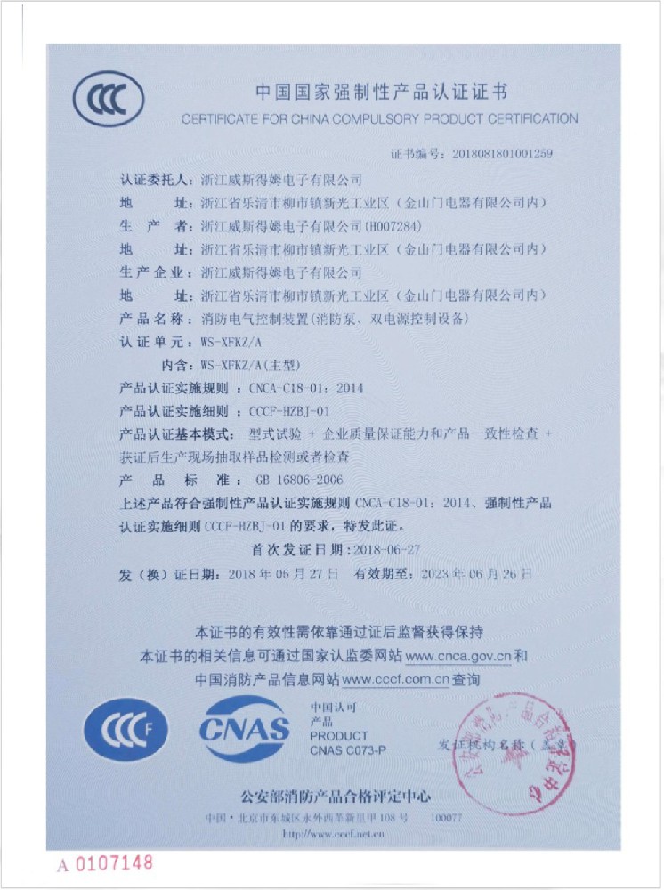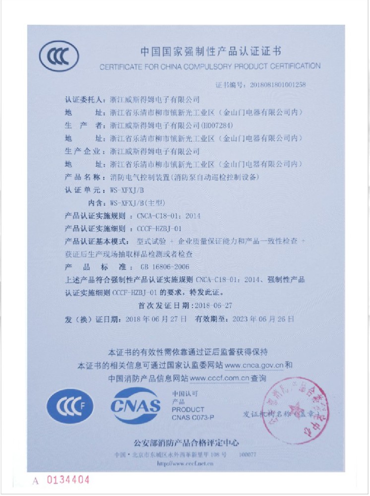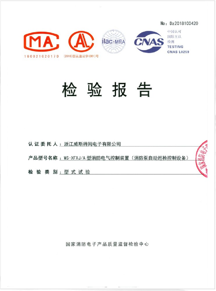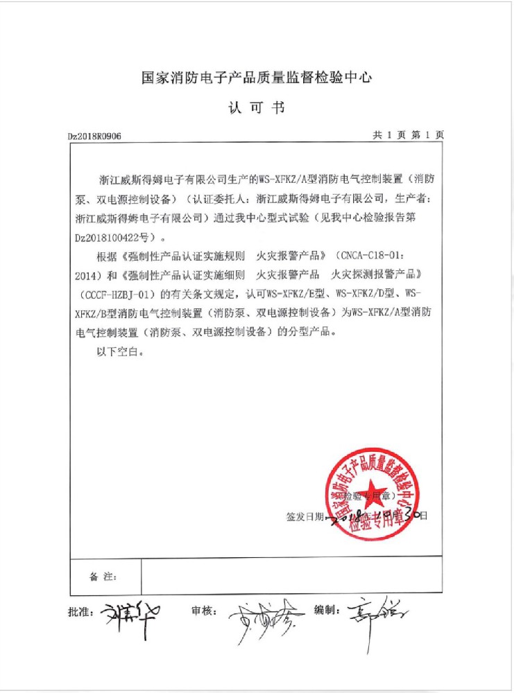 国家消防电子产品质量监督检验中心认可书